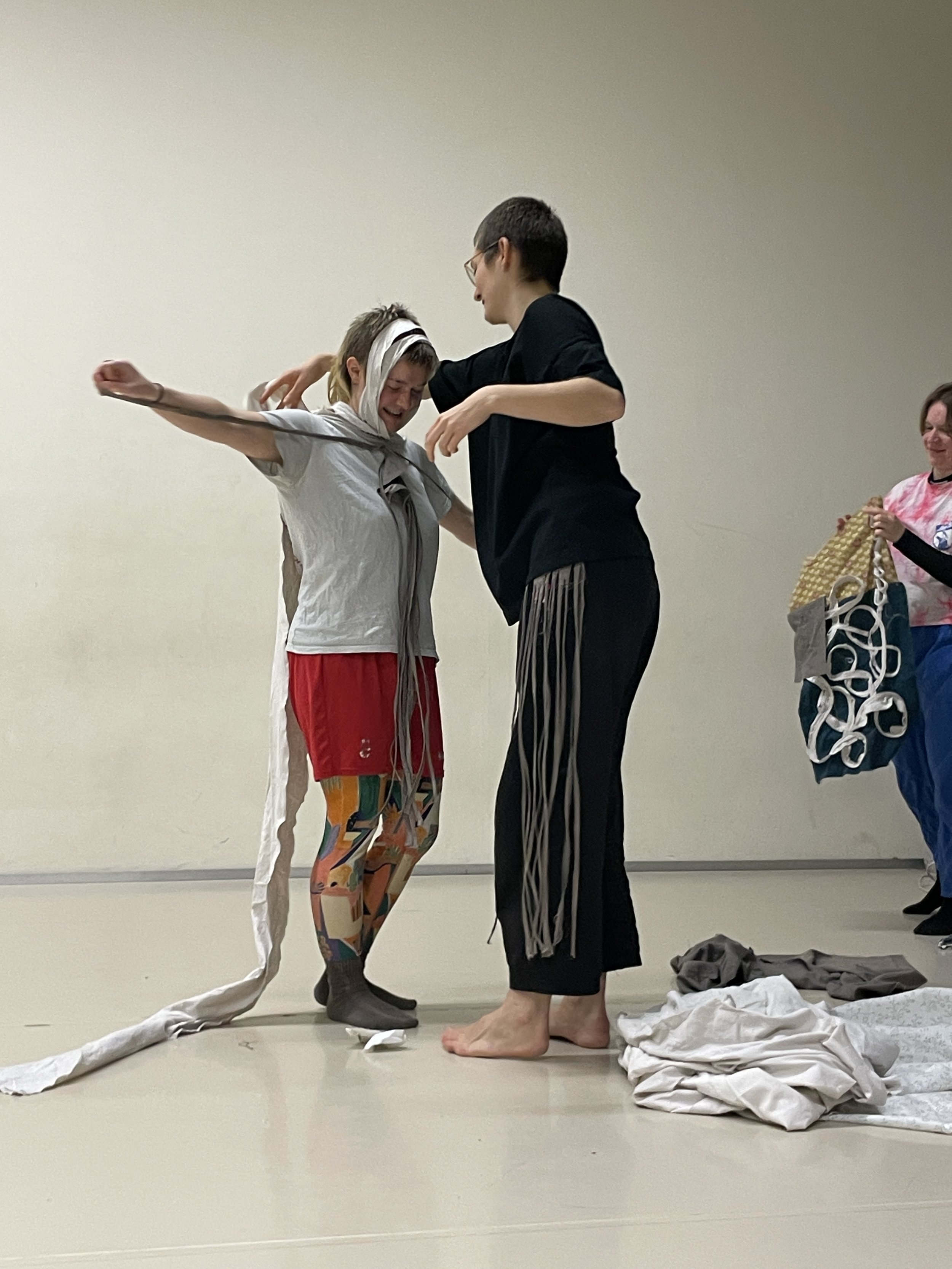 Connecting Thread unfolds out of the ambivalent necessity for tension and stretch in the dancing body, in textile handcrafts and in the social fabric. In this 6 week project for people with or without dance experience, Victoria guided participants through her artistic research and the creative process from ideation to performing including observation, reflection and embodying gestures of sewing, knitting, and weaving to build dance phrases.